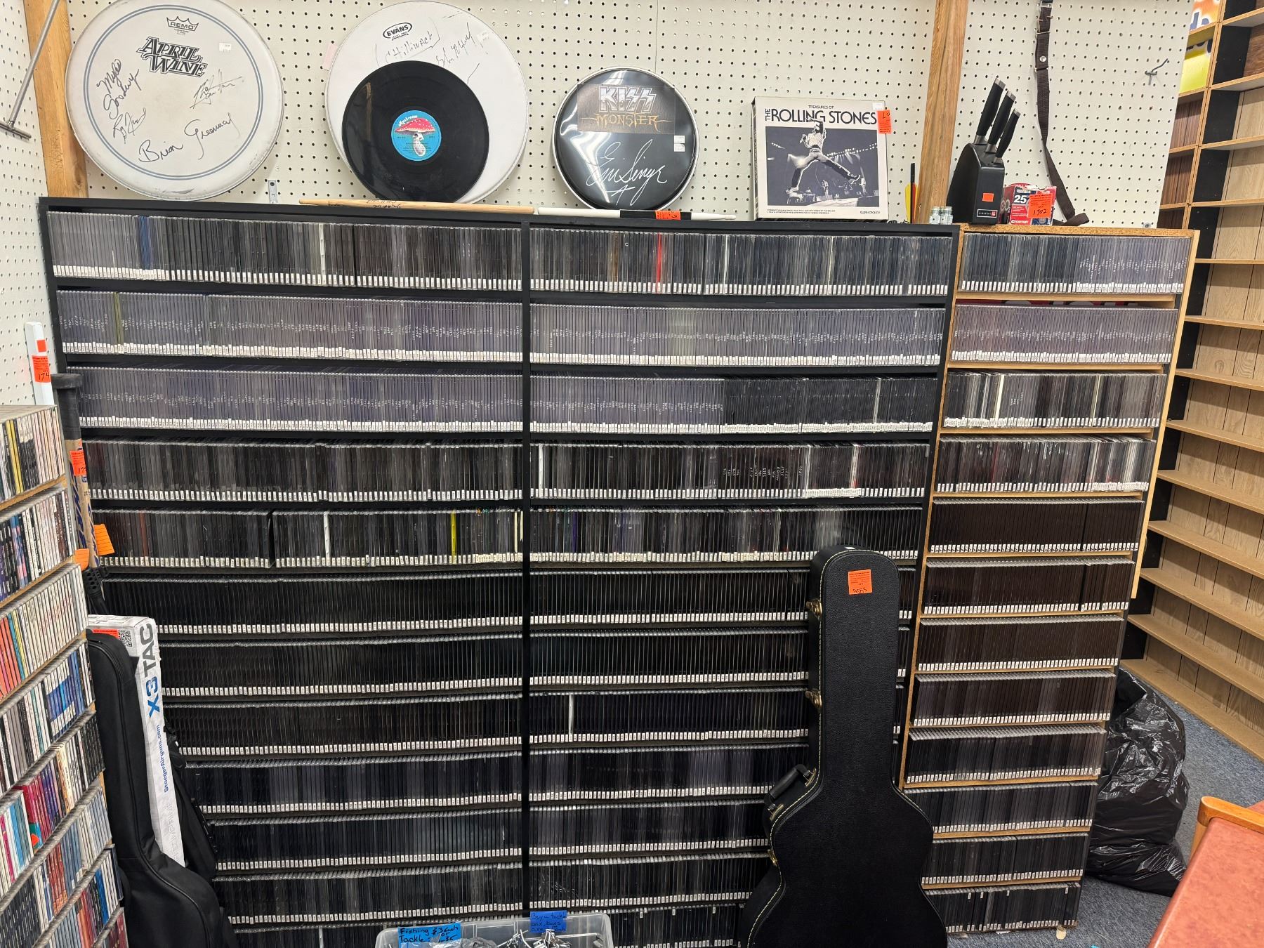 Wall of empty CDs case