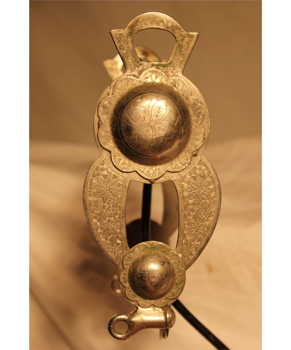Walla Walla Prison Bit; an unusual oversized cut-out bit with big scalloped 2 1/2" conchos, halfbreed mouthpiece and terrific lipbar.