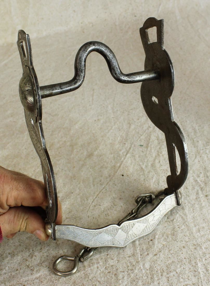 Wonderful over sized fully over laid bit covered in leaf and vine engraving with scalloped conchos.