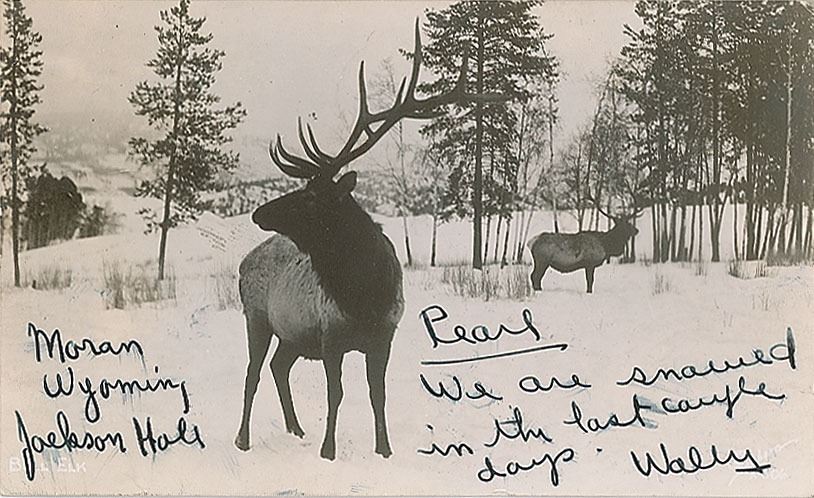 Two items: an ALS signed "Wally," one page, 8.5 x 11, annotated February 11, 1947, in part: "Sorry I did not get to see you again before leaving N.Y. but will be back in 10 days—without Carol Ann and then I can spend more time with you—she has a cold in the chest and I am giving her rules every night—She had a swell time in Washington"; and a 5.5 x 3.25 postcard depicting a reindeer, signed and inscribed on the front, "Pearl, We are snowed in the last couple days, Wally, Moran, Wyoming, Jackson Hole." In overall fine condition.