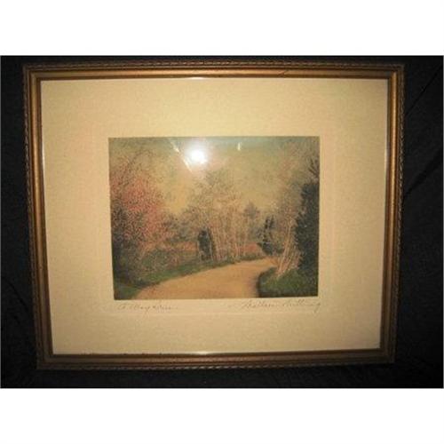 This fantastic Signed Wallace Nutting Print is entitled "A May Drive" and signed Wallace Nutting. It is in its original frame and original matting and the print measures 12.75" wide and is 15.50" long and including the frame the item measures 14" wide and is 17" long.