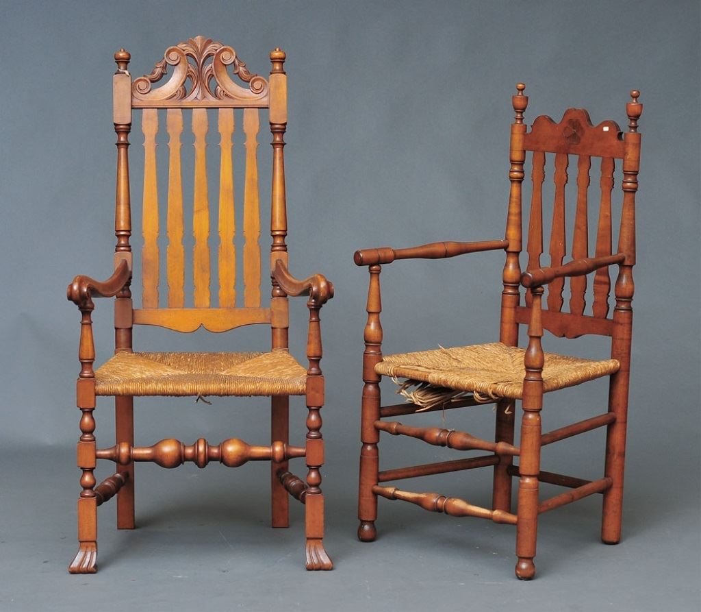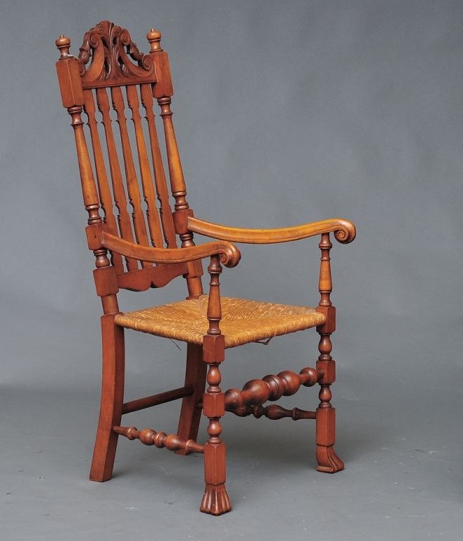 CONDITION REPORT: excellent aside from smaller having losses to rush seat and some finish wear to lower stretcher
