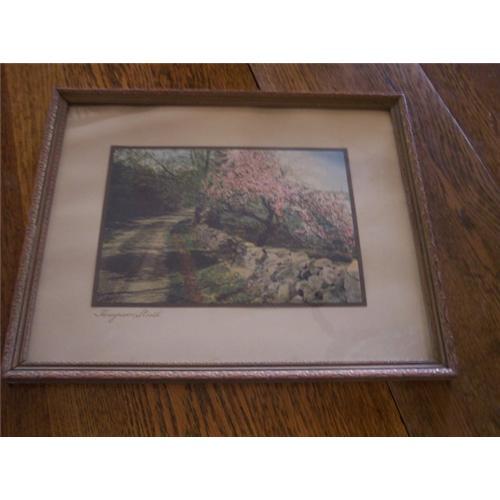 Beautiful colors in this Wallace Nutting print.Called Honeymoon Stroll .Print measures 10 1/2x71/2"-Overall picture with frame is 17x14 1/8.Looks wonderful hanging next to the other Nutting print I have just listed.