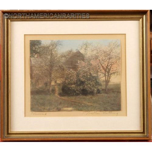 An Original Wallace Nutting Hand Colored Photograph in 13 1/2" x 15 1/2" original wood frame, matted under glass. Signed in pencil lower right corner, titled in pencil lower left corner.