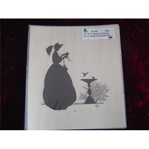 This is an authentic 7" x 8" W. N. Silhouette. Wallace Nutting introduced silhouettes in 1927. An assistant, Ernest John Donnelly (EJD), drew more than 30 different silhouettes. These silhouettes are machine produced copies of the original-pen type hand-done drawings by "EJD." Silhouettes of women typically have only one woman in them and represent both interior and exterior scenes. They are always marked in one of the three ways. Some have the "EDJ" in a circle, "(C) WN," and some carry both. Occasionally, the mark will be cropped off to fit a picture frame. There were at least 22 different WOMAN silhouettes. Please see other silhouettes including Mr. & Mrs. Nutting, Mother's Day, Christmas & Greeting Cards. NOTE: USPS FIRST CLASS SHIPPING & INSURANCE (USA) - $2.00. (H)