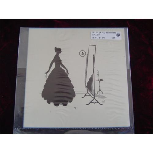 This is an authentic 5" x 5" W. N. Silhouette. Wallace Nutting introduced silhouettes in 1927. An assistant, Ernest John Donnelly (EJD), drew more than 30 different silhouettes. These silhouettes are machine produced copies of the original-pen type hand-done drawings by "EJD." Silhouettes of women typically have only one woman in them and represent both interior and exterior scenes. They are always marked in one of the three ways. Some have the "EDJ" in a circle, "(C) WN," and some carry both. Occasionally, the mark will be cropped off to fit a picture frame. There were at least 22 different WOMAN silhouettes. Please see other silhouettes including Mr. & Mrs. Nutting, Mother's Day, Christmas & Greeting Cards. NOTE: USPS FIRST CLASS SHIPPING & INSURANCE (USA) - $2.00. (H)
