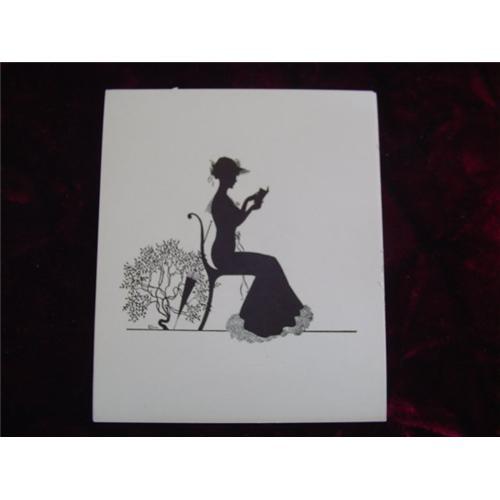 This is an authentic 3" x 4" W. N. Silhouette. Wallace Nutting introduced silhouettes in 1927. An assistant, Ernest John Donnelly (EJD), drew more than 30 different silhouettes. These silhouettes are machine produced copies of the original-pen type hand-done drawings by "EJD." Silhouettes of women typically have only one woman in them and represent both interior and exterior scenes. They are always marked in one of the three ways. Some have the "EDJ" in a circle, "(c) WN," and some carry both. Occasionally, the mark will be cropped off to fit a picture frame. There are at 22 different WOMEN silhouettes in this size (3" x 4"). Please see other silhouettes including Mr. & Mrs. Nutting, Mother's Day, Christmas & Greeting Cards. NOTE: USPS FIRST CLASS SHIPPING & INSURANCE (USA) - $2.00. (H)