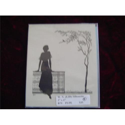 This is an authentic 3" x 4" W. N. Silhouette. Wallace Nutting introduced silhouettes in 1927. An assistant, Ernest John Donnelly (EJD), drew more than 30 different silhouettes. These silhouettes are machine produced copies of the original-pen type hand-done drawings by "EJD." Silhouettes of women typically have only one woman in them and represent both interior and exterior scenes. They are always marked in one of the three ways. Some have the "EDJ" in a circle, "(c) WN," and some carry both. Occasionally, the mark will be cropped off to fit a picture frame. There are at 22 different WOMEN silhouettes in this size (3" x 4"). Please see other silhouettes including Mr. & Mrs. Nutting, Mother's Day, Christmas & Greeting Cards. NOTE: USPS FIRST CLASS SHIPPING & INSURANCE (USA) - $2.00. (H)