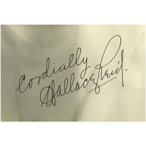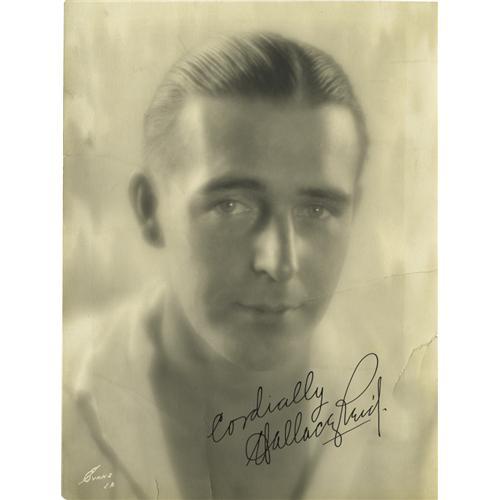 <B>Wallace Reid Signed Photo.</B></I> A b&w 6.5" x 8.5" photo inscribed and signed by the silent era heartthrob in black ink. In Fine to Very Fine condition with mild overall toning, a few light creases, and a 2" tear near the lower right corner.<BR><BR><b>Shipping:</b> Small Flat (<a target="_blank" href="http://www.heritageauctions.com/common/shipping.php">view shipping information</a>) <BR><BR><B>Important notic