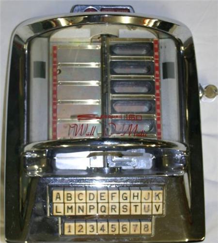 Seeburg Wall-o-matic wall box. Commonly used in service booths in restaurants to allow patrons to make selections for jukeboxes without having to get up. Works with 222 Serburg jukebox. Good chrome. No pitting.