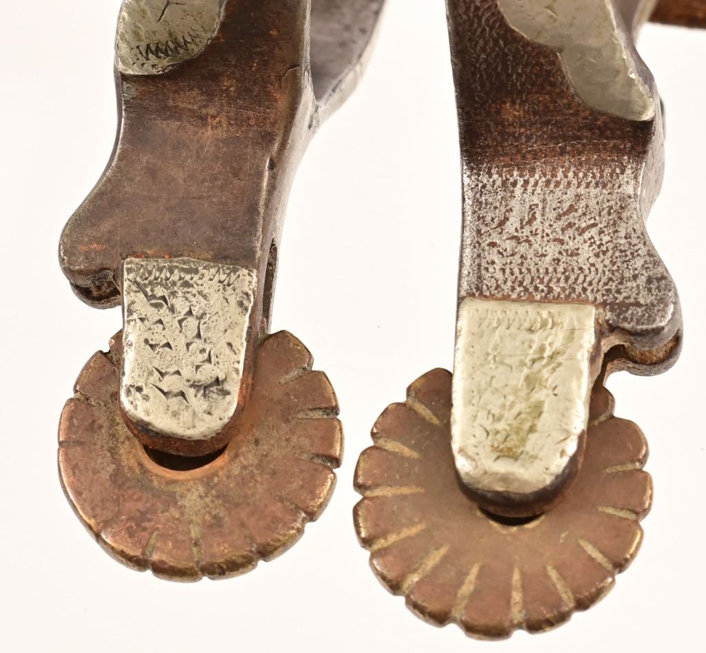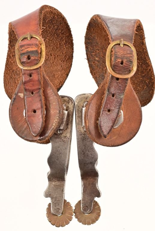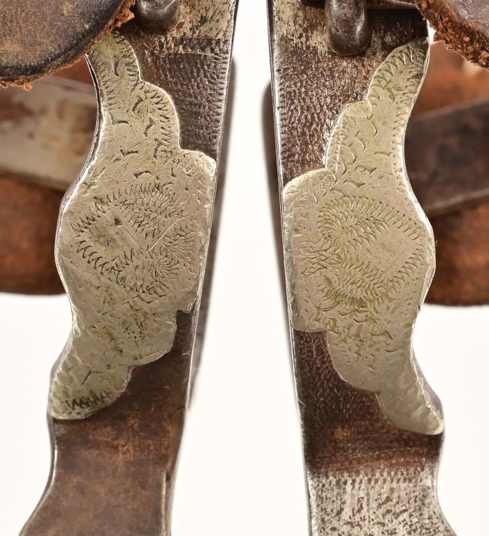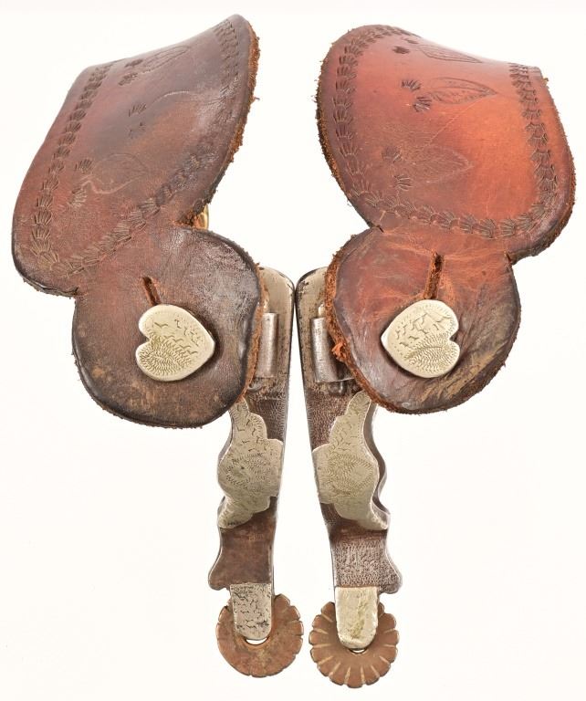 Silver overlay . Heart buttons. Leaf tooled leather straps.