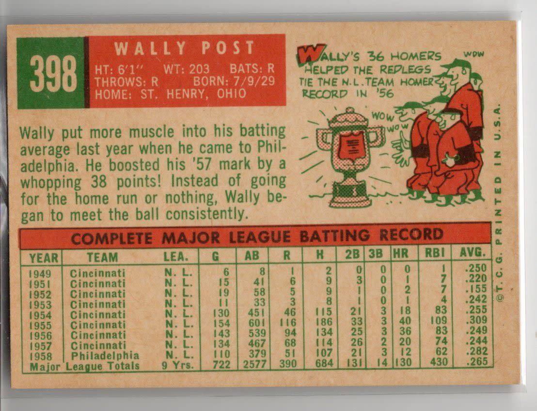 Wally Post 1959 Topps Card number 398
