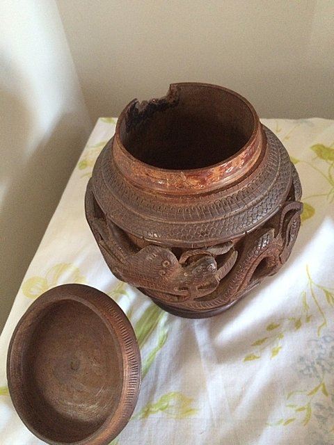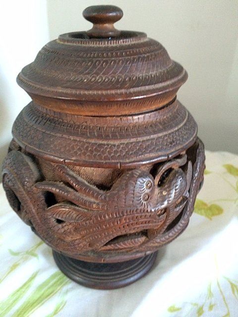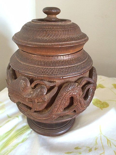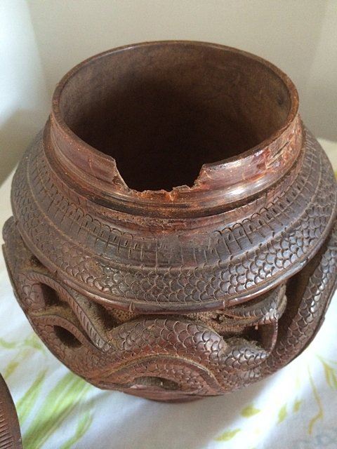 Black Forest or Asian Humidor carved out of Walnut. Has serpent carvings all around it.