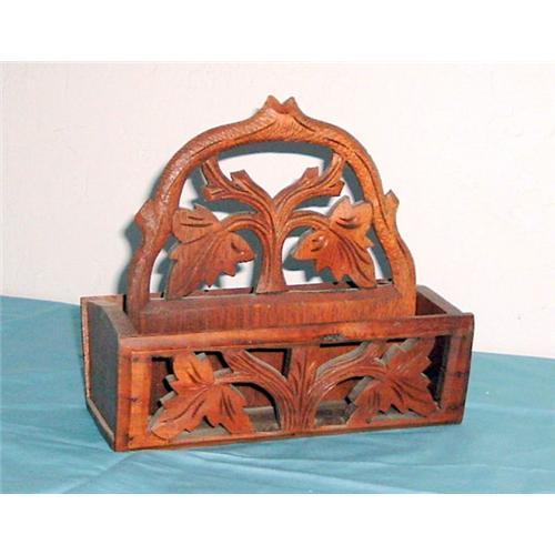 Wonderful small table top tote probably used for extra napkins or silverware. This piece has great relief and carvings. Very good condition.