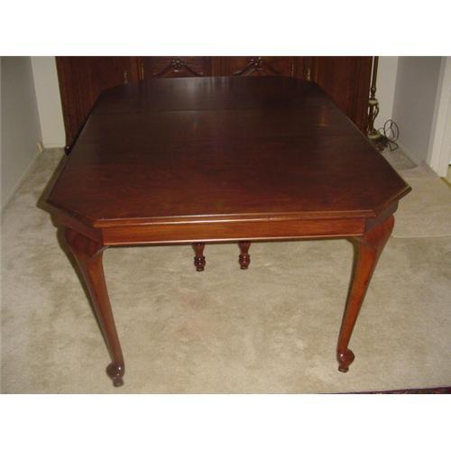 This is a veneer walnut dining table is circa 1930?s with Queen Ann style legs and it has been restored with 15? solid walnut leaf. The table would seat easily 6 people.