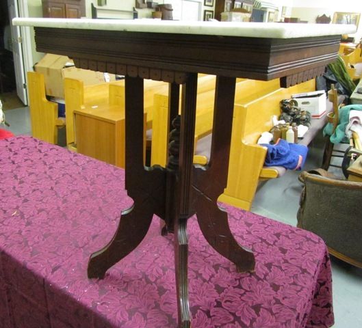 Walnut 19th Century Eastlake Marble Top Lamp Table 32" tall