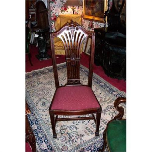 Antique walnut KING's chair in excellent condition. This special chair is over four feet high at the crest rail and is very detailed. Upholtereed with red diamond pattern fabric. A nice addition for your library, den or office.