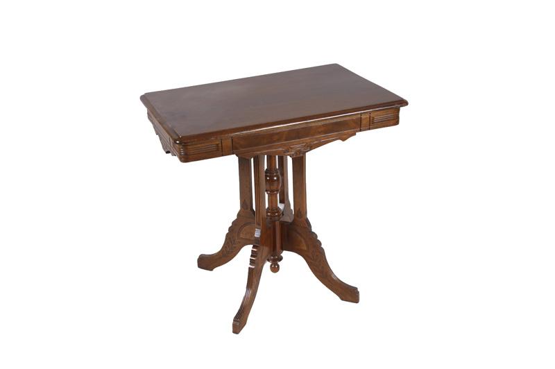 Walnut Lakewood Side Table In overall good condition, shows age, small minor scratches, measures 29"