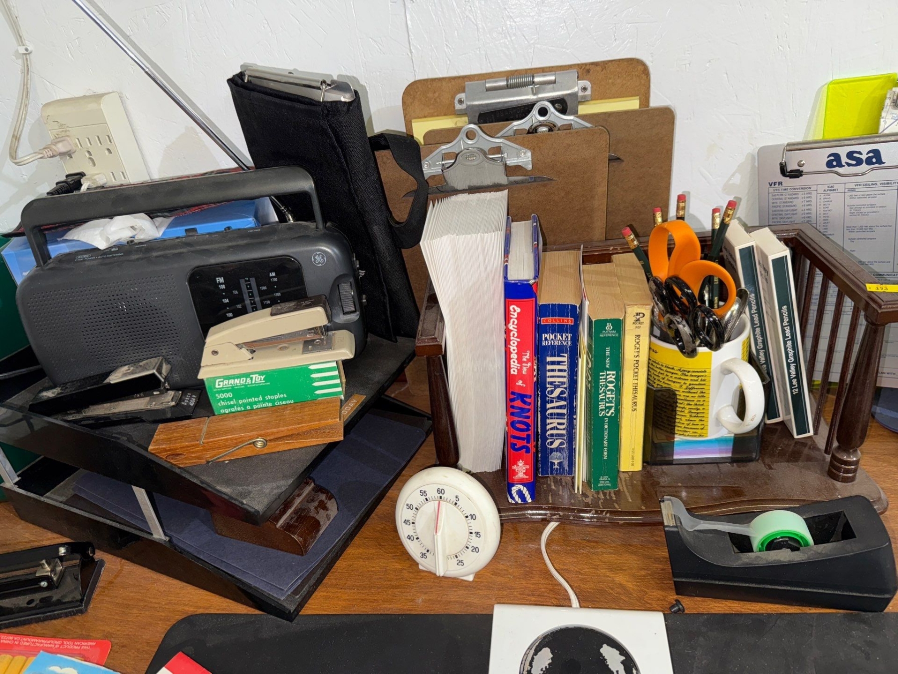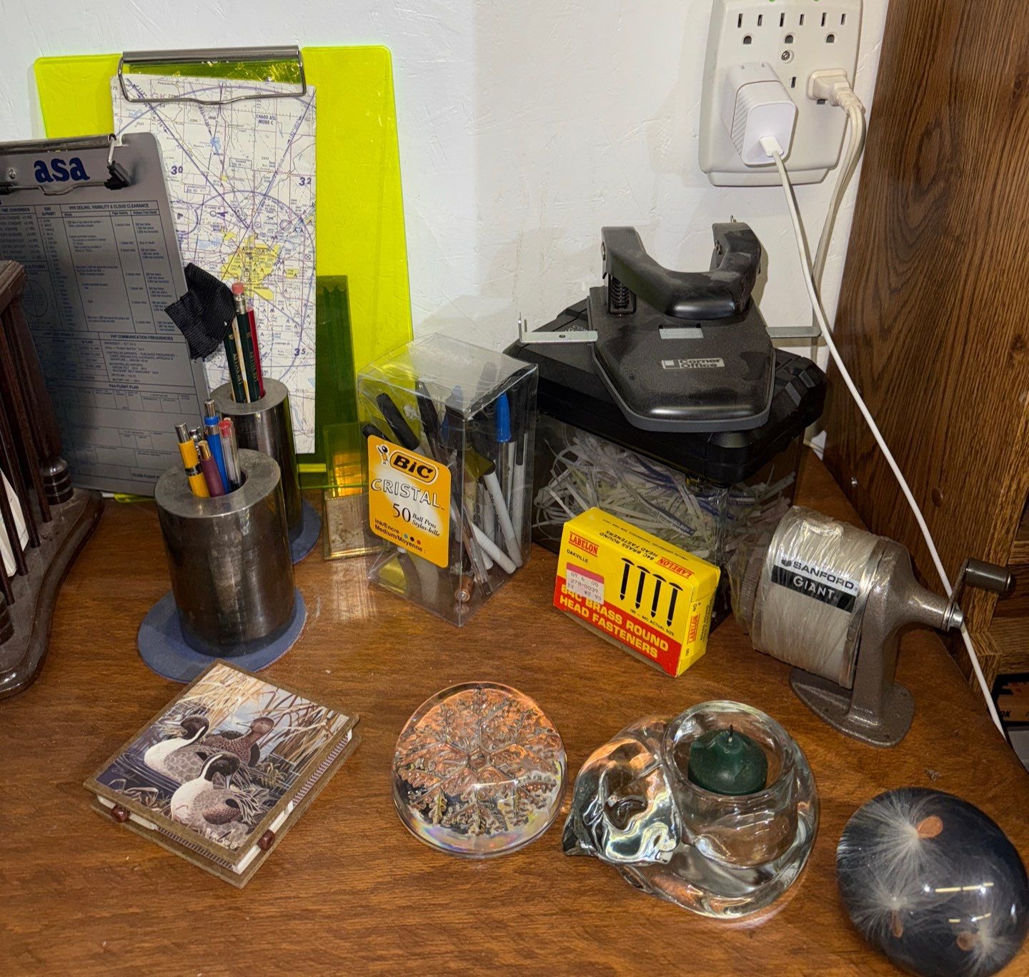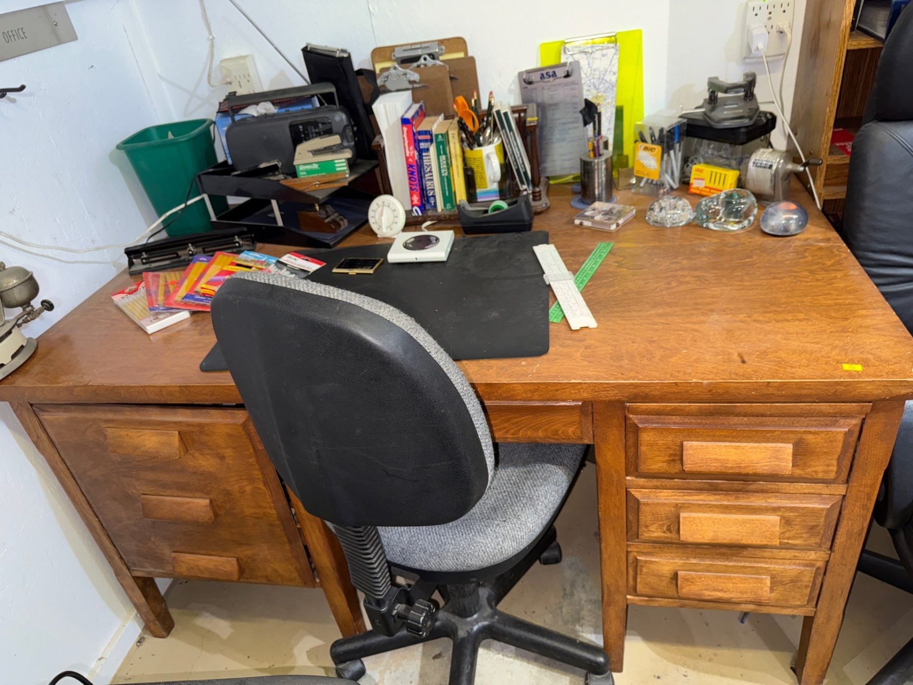Walnut Principals Desk w/ Vintage Stationary & Desk Contents 60x35x31 Very Solid & Heavy Bring Able