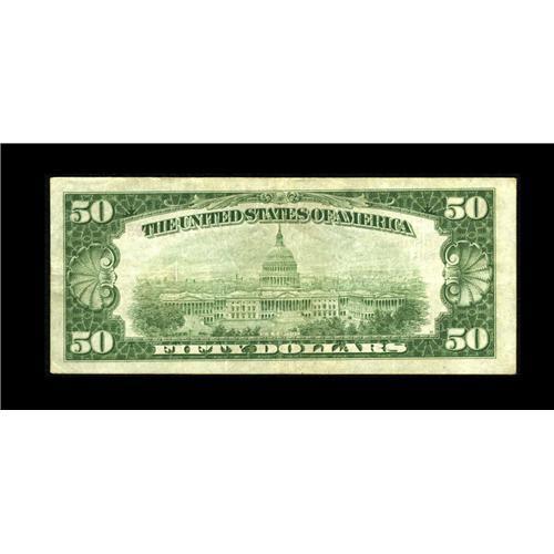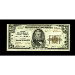 <B>Walnut Ridge, AR</B></I> - $50 1929 Ty. 2 <B>The First NB of Lawrence County</B></I> Ch. # 11312<BR>Sometimes the best is saved for last, as this wonder note proves. If ever a series 1929 note had everything a collector could desire, this piece might come the closest to meeting that ideal. It is the only $50 Series 1929 example known from the state from the only bank that issued this denomination, it bears a neat title which is just plain rare, and it bears serial number 50 on a fifty...and, by the way, has enough grade to count as well. Our consignor obtained this note from your cataloguer when we were both considerably younger, and paid what was then a very stiff price for the privilege of owning it. Time has more than justified his decision, as the currency marketplace has now matured to a place where true rarity and desirability are being awarded the premium they deserve. What this unique note, which has never previously been publicly offered, will realize is anyone's guess, but when the smoke clears tonight, only one collector will have the satisfaction of being able to complete a set containing every small size Arkansas type and denomination. <B>Very Fine.</B></I><BR><BR><b>Shipping:</b> Coin/Currency (<a target="_blank" href="http://www.heritageauctions.com/common/shipping.php">view shipping information</a>)