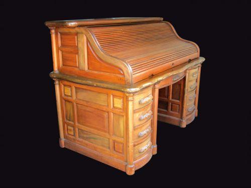 Walnut S-Roll Top Desk, with paneled sides and back. At press time we did not have a key to open it. We will continue to try to get it open before the auction. If not, we will sell it as is. Excellent original condition. 66 X 49 X 38 inches.