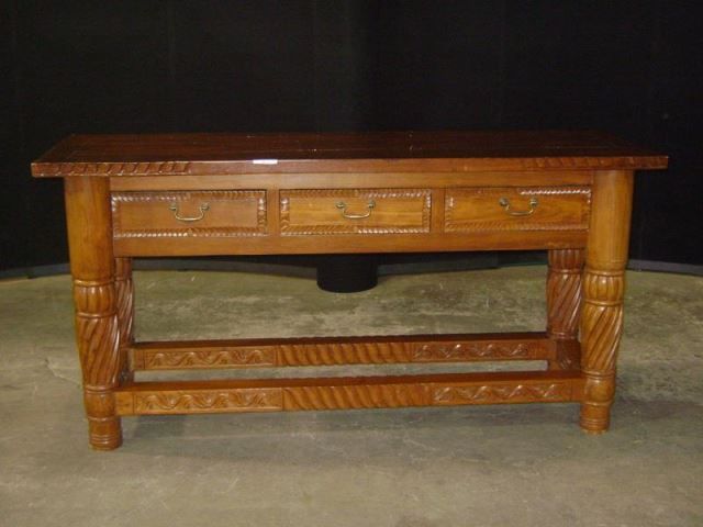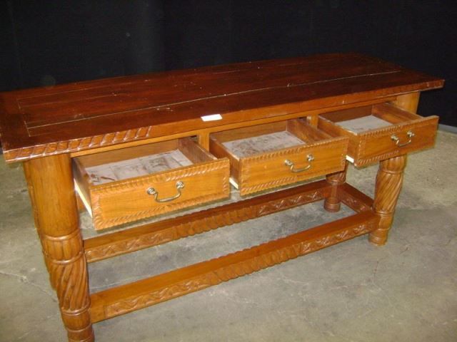 Walnut Serving/Sofa Table w/ 3 Drawers