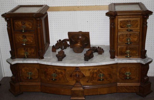 Antique furniture: Impressive High Back Walnut Victorian Bed (Best one we’ve ever seen)with Matching Half Commode-Gorgeous 1890s Cherry Wood Dining Room Set with Large Mirrored China ...