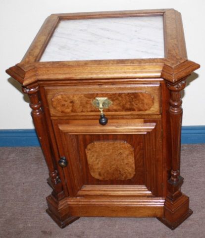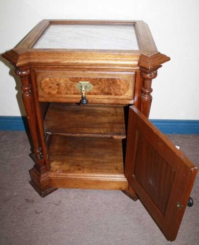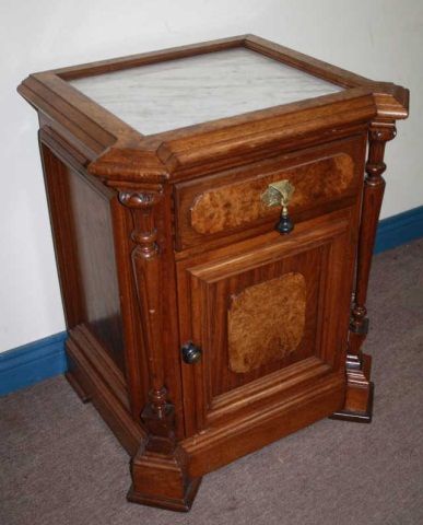Antique furniture: Impressive High Back Walnut Victorian Bed (Best one we’ve ever seen)with Matching Half Commode-Gorgeous 1890s Cherry Wood Dining Room Set with Large Mirrored China ...
