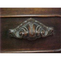 Walnut Victorian chest of drawers, beveled white marble top, bow front with raised oval line decoration on each drawer front and around each escutchen, scalloped apron, measures 32 1/2" high x 37" across x 18" deep Estimate 200/350
