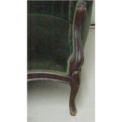Walnut Victorian sofa, triple medallion back, over green velvet upholstered back and seat, serpentine seat rail, C.1870 Estimate 150/300