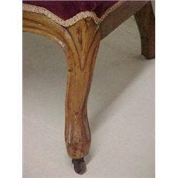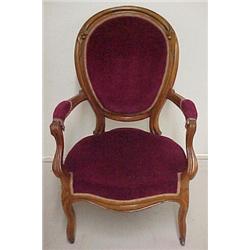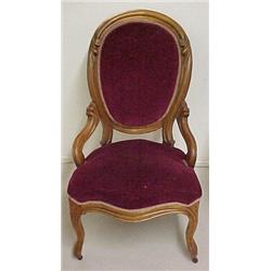 Walnut Victorian upholstered lady's and gentleman's chairs, carved frame on medallion back, dark red upholstered seats and backs, front legs on casters Estimate 200/300