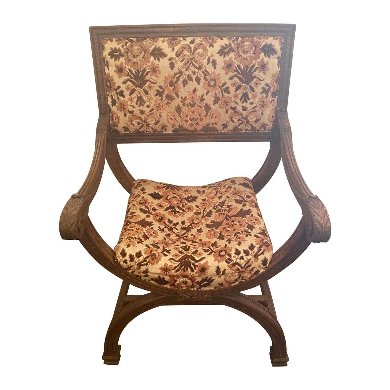 French Carved Walnut Curule Chair It was created by skilled craftsmen in traditional style with fine handcrafts. the handwork is very fine with incredible detailling. This is a great piece of valuable collection, a valuable personal alter or a very good present. Don't miss out this chance to get it .Good luck to you!
