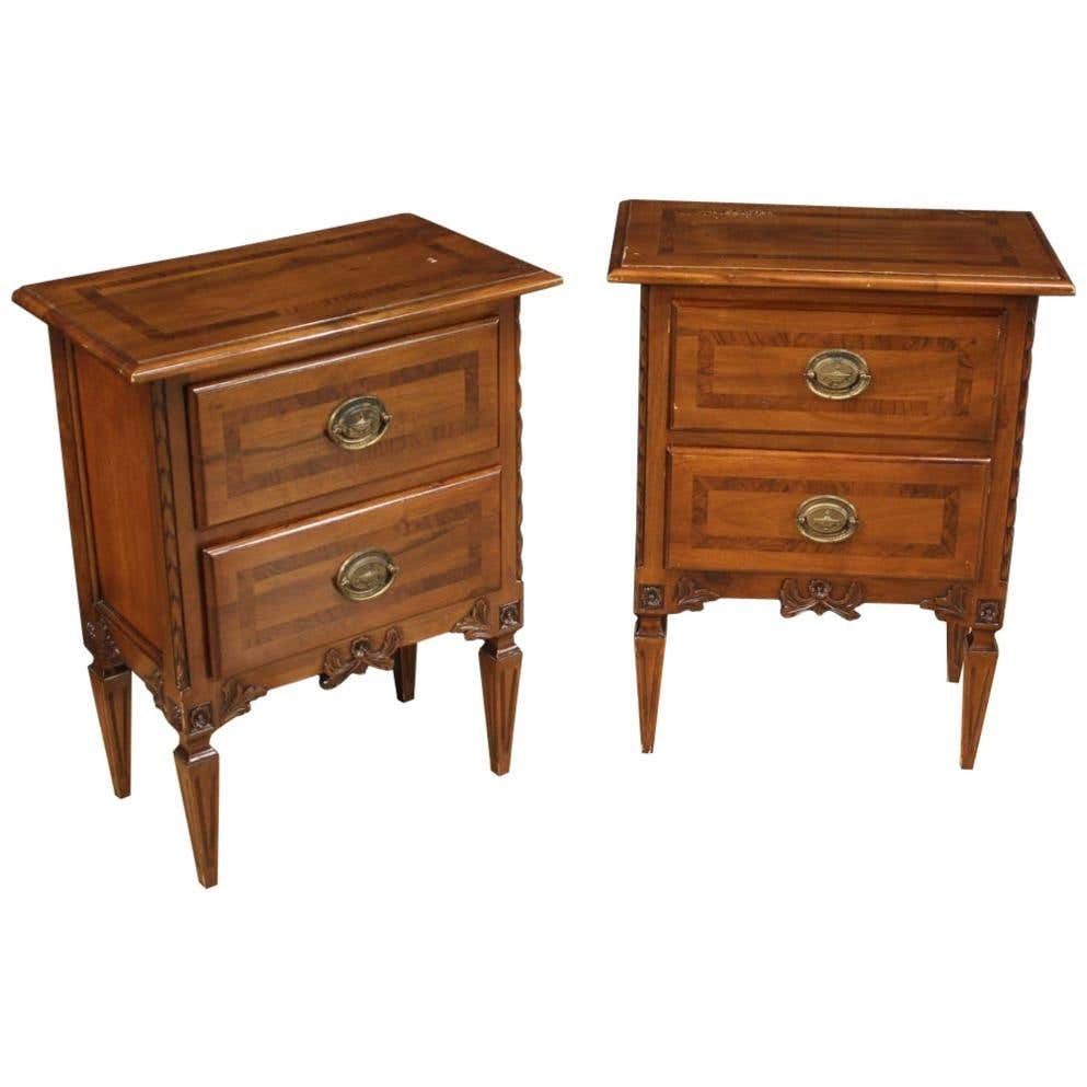 Walnut Wood Side Table Pair Louis XVI It was created by skilled craftsmen in traditional style with fine handcrafts. the handwork is very fine with incredible detailling. This is a great piece of valuable collection, a valuable personal alter or a very good present. Don't miss out this chance to get it .Good luck to you!