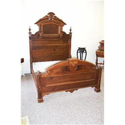 Nice refinished walnut Victorian standard double size bed with a nice burl work and crest.