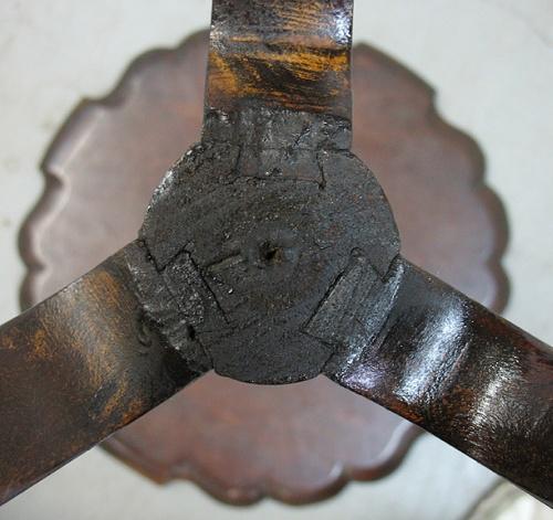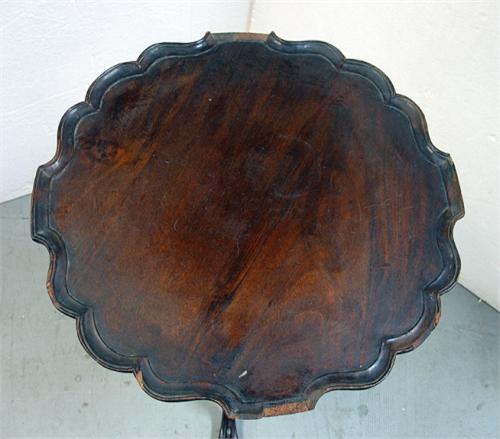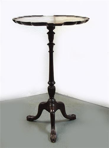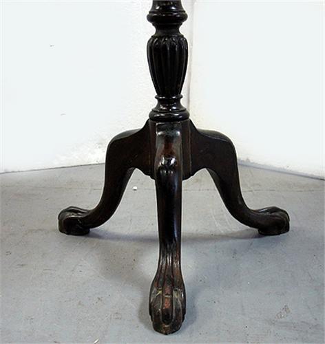 Walnut candlestand; piecrust top; on vase and ring turned standard; three legs terminating in ball and talon feet; early 19th C.; measures 28" high x 17 3/4" diameter (missing two sections of piecrust top)