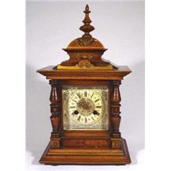Walnut cased chiming mantle clock with applied gilt mouldings and J Unghans movement, 47cm high
