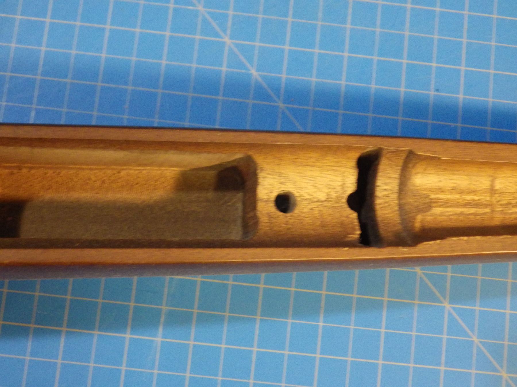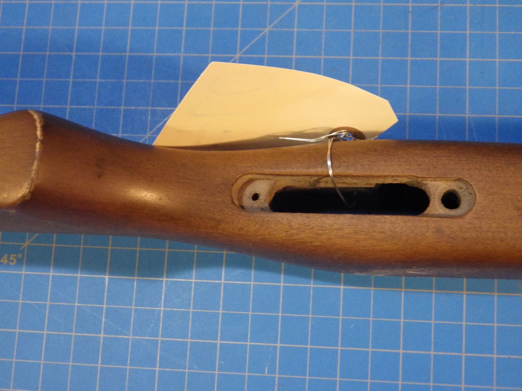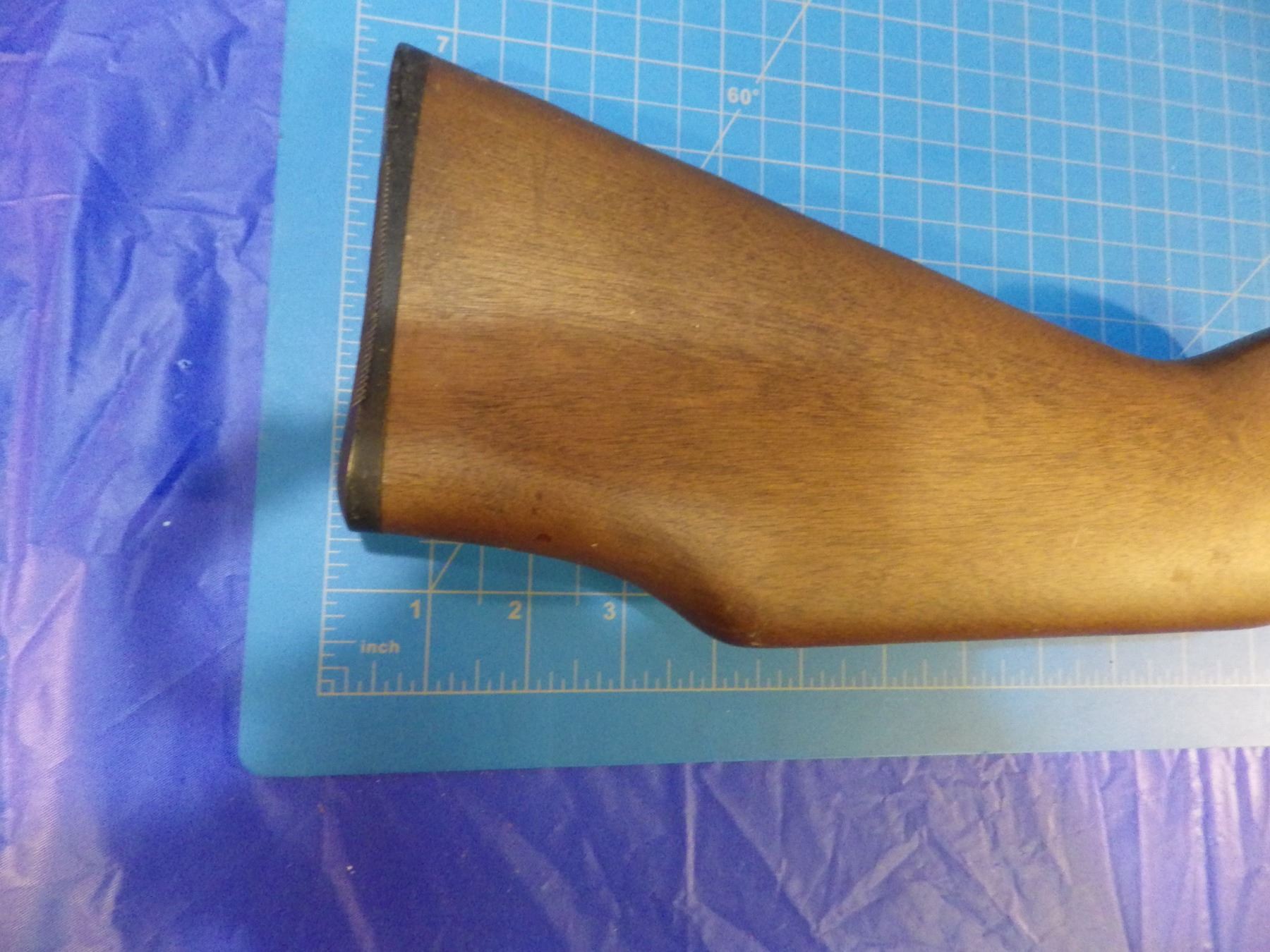 Walnut gun stock for a long action -- HAS CHIP OUT JUST BEFORE BOLT HANDLE.
