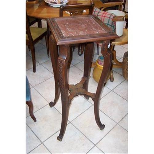 </font></strong>Lovely walnut plant stand with red marble on top from France C.1900</font>