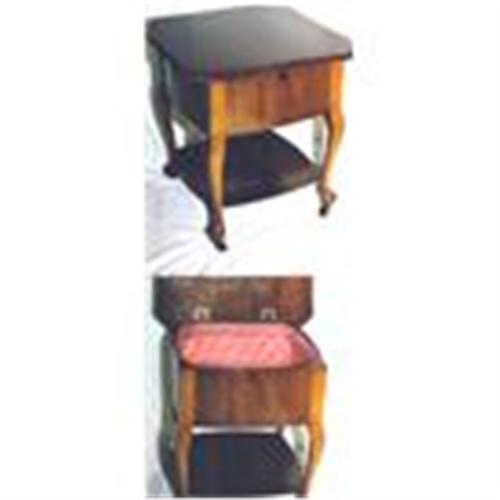 <tr><td>Title:Walnut sewing table/cabinet with hindged lid.</td></tr>