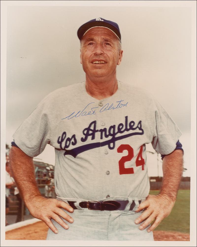 Color satin-finish 8 x 10 photo of Alston in his Los Angeles Dodgers uniform, signed in blue ballpoint. In fine condition, with a couple of minor corner tip creases.