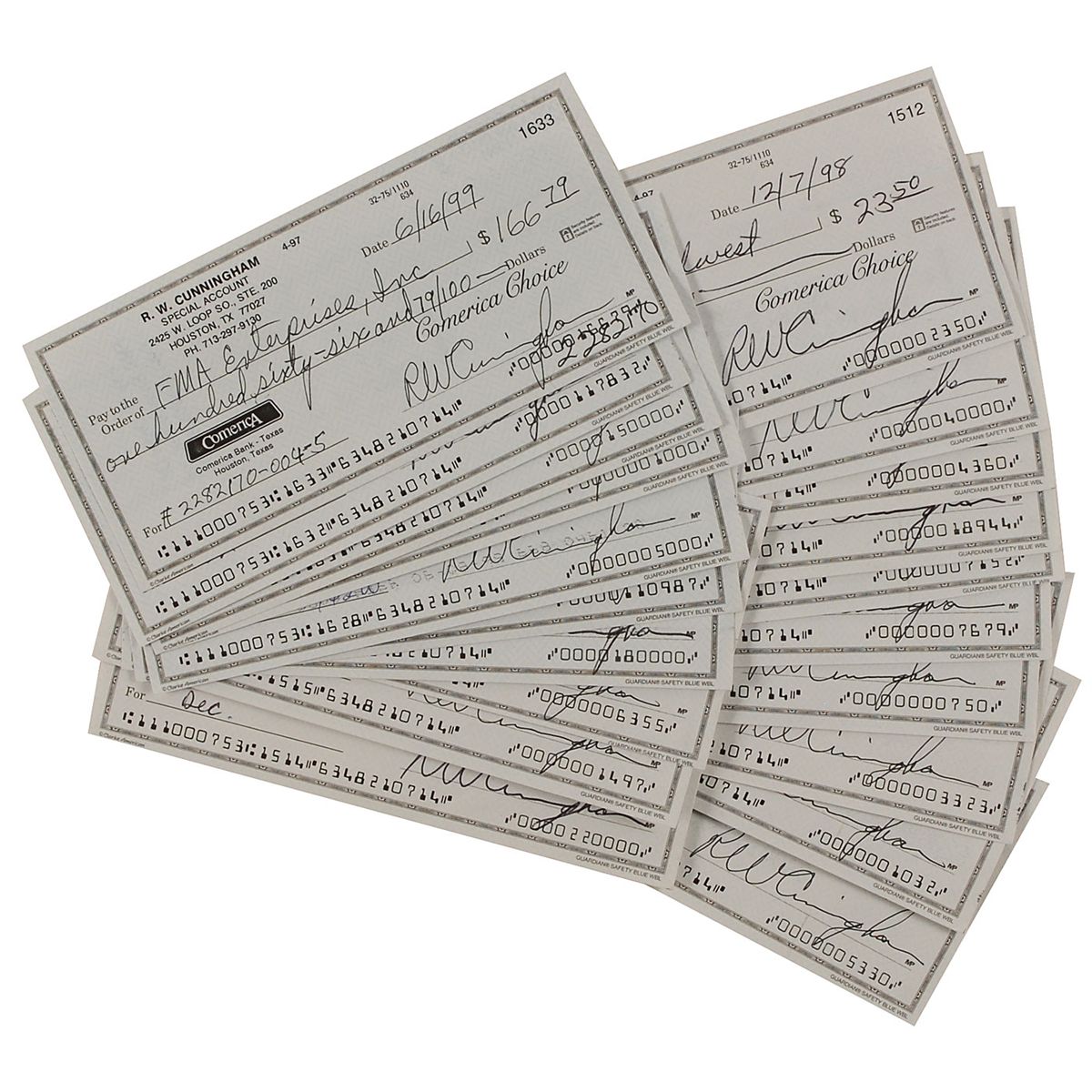 Twenty personal checks, all 6 x 2.75, all from 1998–99, and all filled out and signed by Cunningham, “R. W. Cunningham.” In overall fine condition.