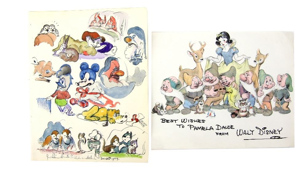 Walt Disney - An original colourwash signed by Gerald Stanwell Smith, dated Dec 25th 1939 and a secretarial signed page, largest 7 x 8.5 inches (2)