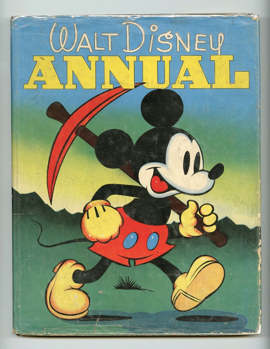 (Whitman Publishing Co., 1937) Large hardcover Walt Disney annual featuring stories of Mickey Mouse and Friends. Comes with original dust jacket. Measures 13.75"x10.75". In good condition with some moderate wear to the dust jacket, and some writing on the interior cover and first page in ink and pencil.