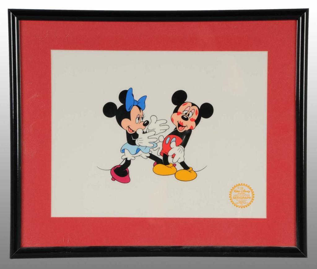 Description Scene featuring Minnie and Mickey. Framed under glass. Condition (Excellent). Size Frame: 17" x 15". Cel: 12 - 1/2" x 10".