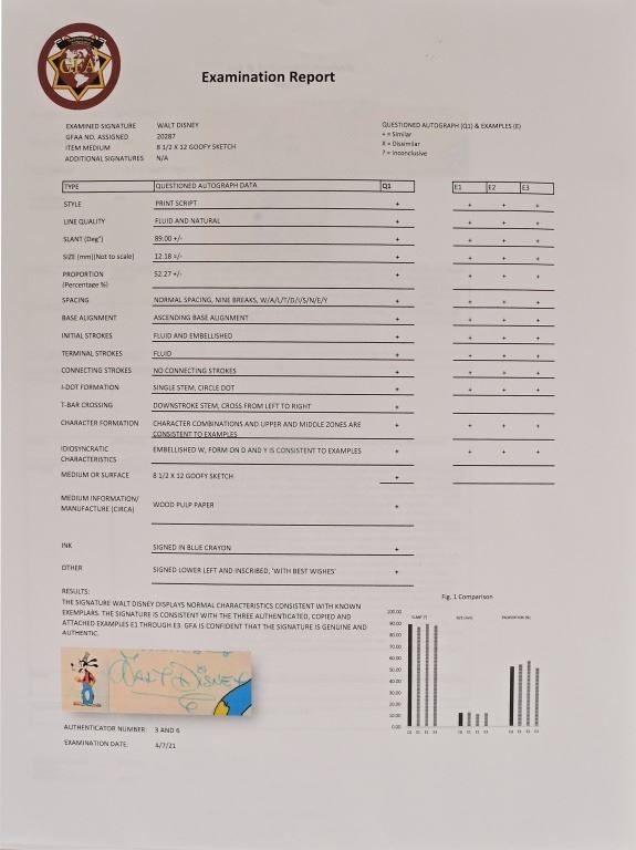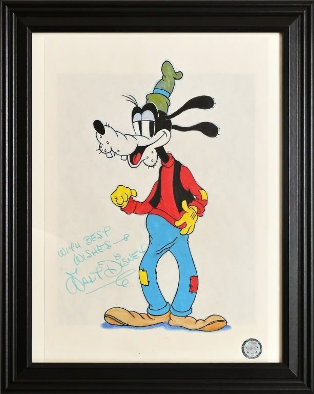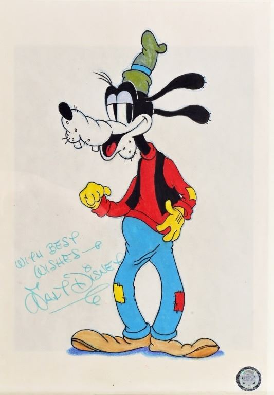 Goofy Walt Disney original signed drawing inscribed With Best Wishes Walt Disney. Custom matte and framed. 12x15 inches. GFA Authenticated. PD128