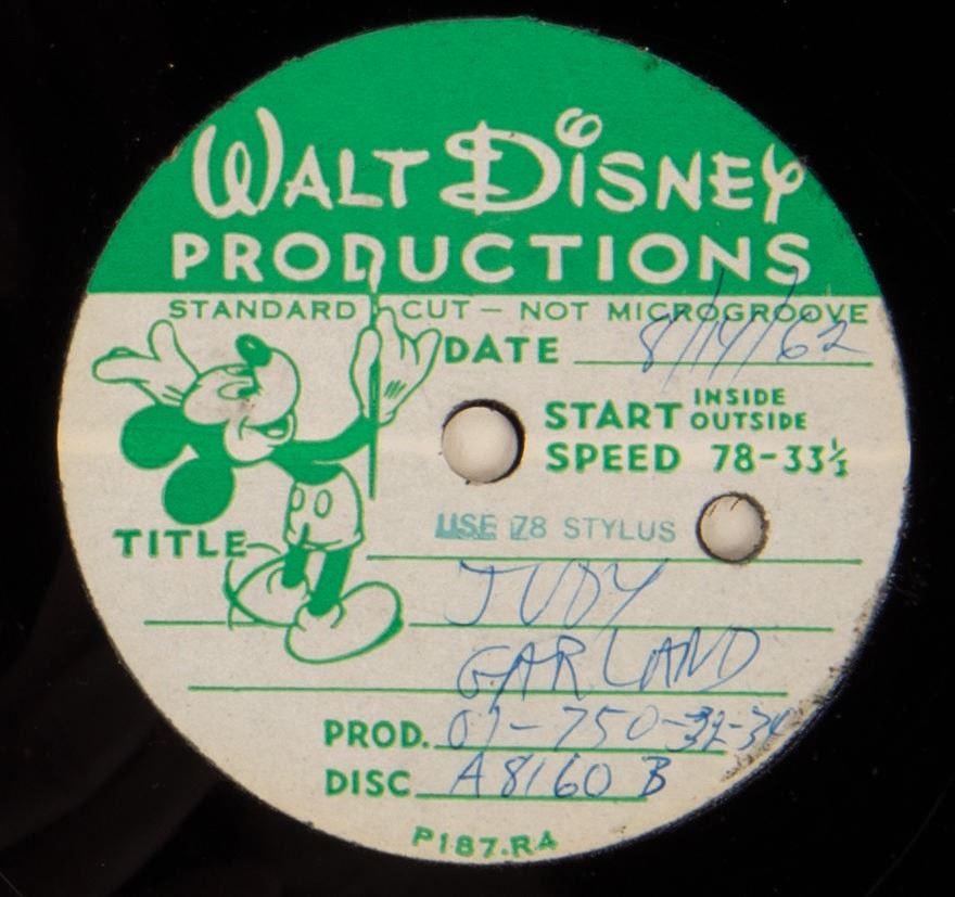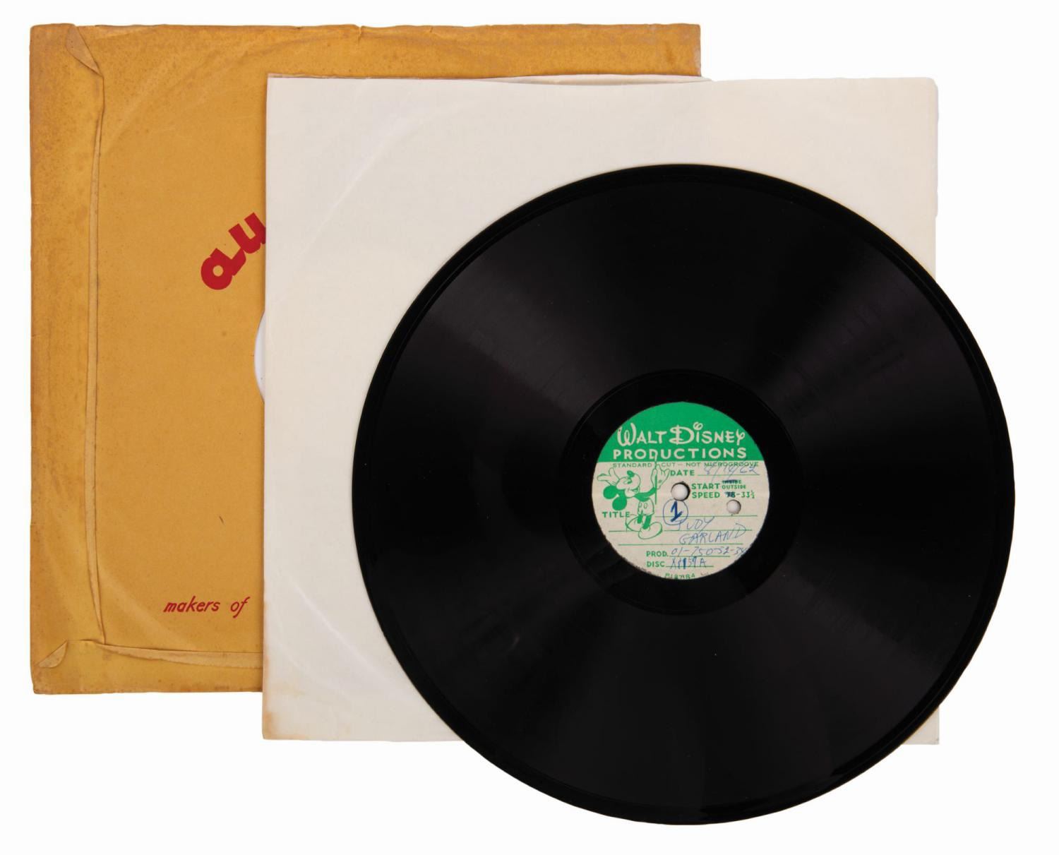 (Disney, 1962) A set of three direct-to-disc master studio acetate recording discs capturing live instrumental and vocal performances of Judy Garland as weLl as Frank Sinatra and Dean Martin during the production of her "Once In A Lifetime" CBS television special airing on February 25, 1962. Each disc measures 16" in diameter, and all are in very good condition.