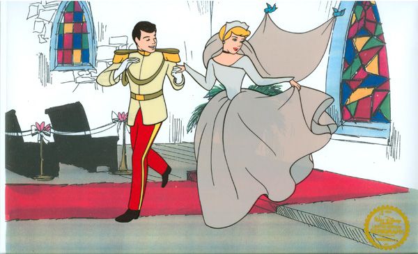 Walt Disney Serigraph, Cell, Cinderella and Prince Charming at Chappel W/ certificate Of Authenticity