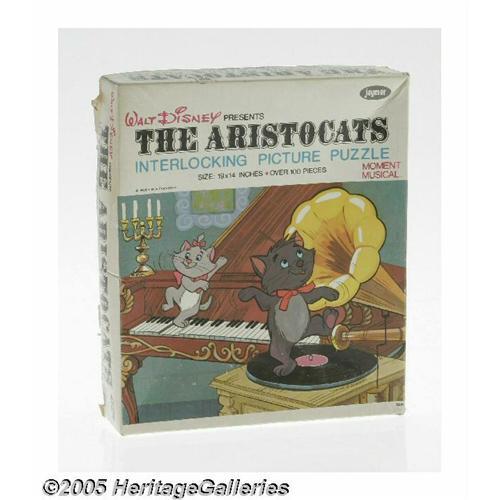 <B>Walt Disney Studio Artist - The Aristocats Picture Puzzle Cover Original Art (Jaymar, early 1970s).</B></I> While Marie tickles the ivories, Berlioz kicks it old school, in this brilliant cover illustration for " "<B>The Aristocats Interlocking Picture Puzzle</B></I> #5047. This 100 piece interlocking picture puzzle was produced by Jaymar in the early 1970s. Spectacularly painted on heavy illustration board, the art has an image area of 15"" x 9"", and is in Excellent condition. Includes a " "<B>The Aristocats Interlocking Picture Puzzle</B></I> #5047. <BR><BR><B>Important notice:</B> Heritage usually auctions material at the rate of 200-250 lots per hour. On some occasions eBay Live bid software or the Internet may not be able to keep up with the pace of the auction. We recommend placing a realistic absentee bid now as insurance to avoid disappointment. Occasionally the auctioneer may eliminate or reject an eBay Live bid, and the auctioneer may also reopen a lot after the close of the eBay live bidding (usually because we missed an audience bid), and may reject your bid even if it shows you as the winning bidder. By bidding via eBay Live, you agree that Heritage may award the lot to another bidder at its sole discretion under the circumstances described above or any other reasonable circumstances. Since eBay bids are not shown to us until we open the lot on the floor, we treat those bids just like floor bids. In most cases the floor responds before the eBay bid is presented to us, due to Internet lag time, so for consistency we have made it a policy that floor bids are always considered first over tie eBay live bids. Also please note that all Heritage lots purchased through eBay Live carry a 20% Buyer's Premium. Please make sure you read the Terms and Conditions before you bid. This lot is being auctioned in conjunction with a live floor auction by Heritage Galleries & Auctioneers. All final auction and invoice information will be supplied by Heritage Galleries