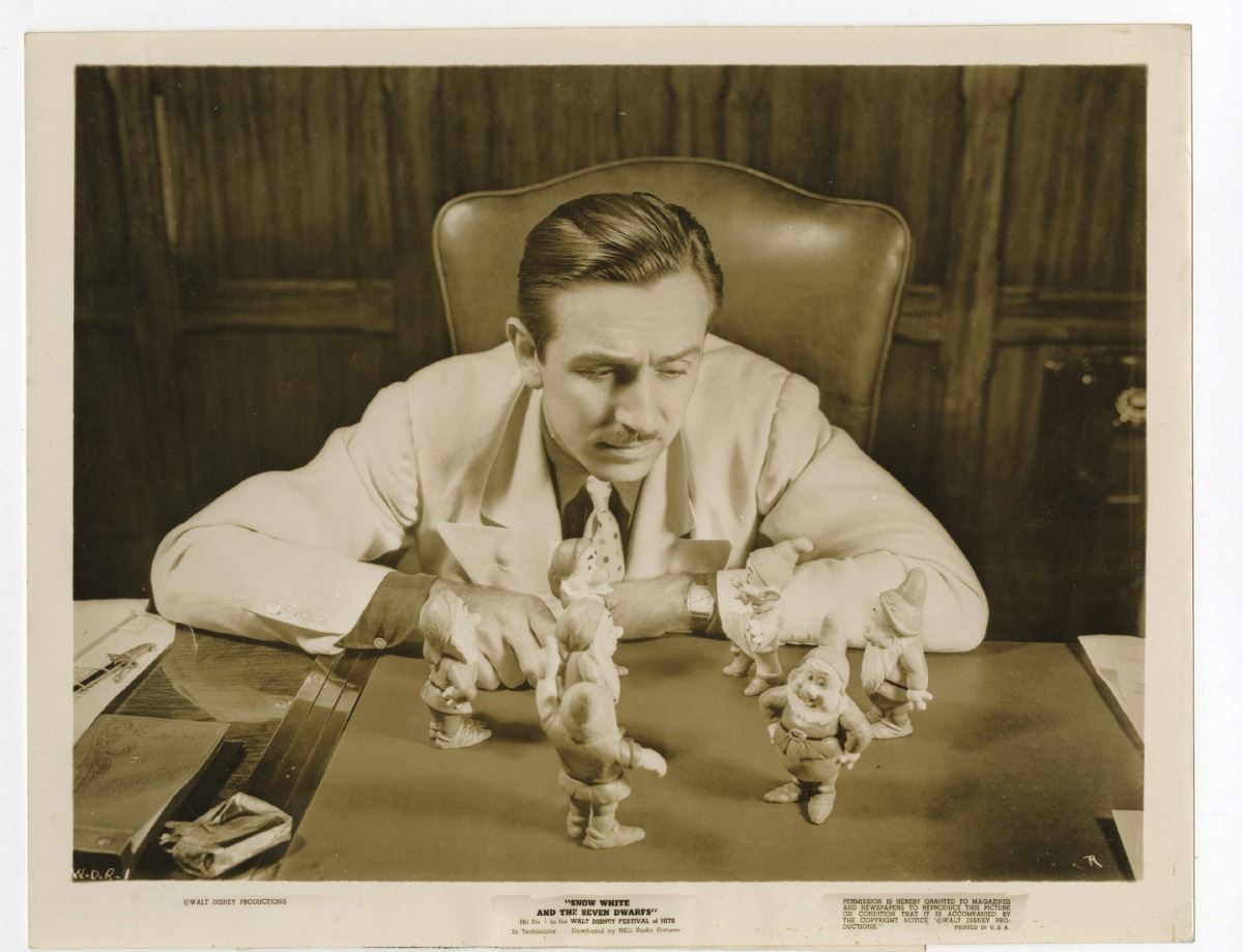 (Walt Disney Studios, 1937/1940) A beautiful 8"x10" publicity photo of Walt Disney taken during development of "Snow White and the Seven Dwarfs". This photo contains press information on the reverse stating that the film had just been selected to head the "Walt Disney Festival of Hits" in 1940. The festival included a screening of "Snow White and the Seven Dwarfs", "The Practical Pig", "The Ugly Duckling", and "Ferdinand the Bull" that appeared in a very limited number of theaters. Photo is in very good condition with minimal wear.