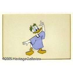 <B>Walt Disney Studios - Donald Duck and Ludwig Von Drake Hand Painted Production Cels Original Art (Walt Disney Productions, circa 1960s).</B></I> In October 1961, "An Adventure In Color/Mathmagic Land" introduced the brilliant, erudite Viennese professor, Ludwig Von Drake, to young admirers of "Walt Disney's Wonderful World of Color." Von Drake was the host of many television featurettes all through the 1960s, and some new ones were done in the early 1980s as well. Here are two original hand-painted cels featuring Von Drake. One cel measures 5.5" x 7.5" and the other measures 4.5" x 6.5". The third cel features Donald Duck in a toga, it measures 6" x 9". The three cels average in Excellent condition. 3 Original Art